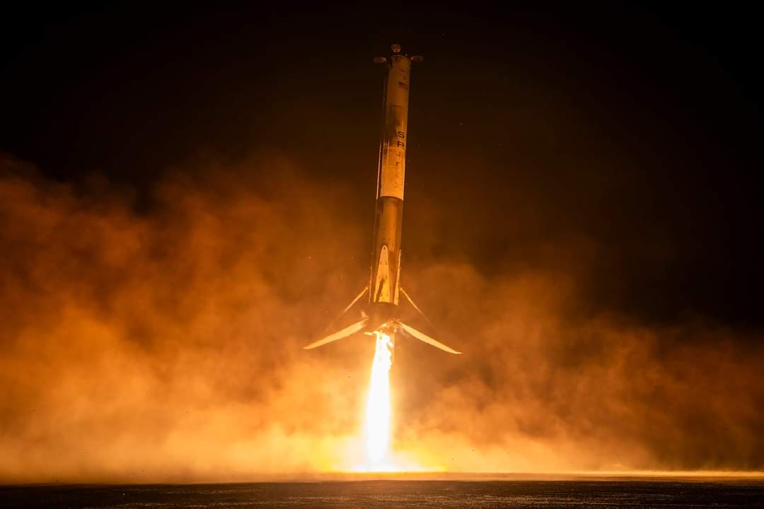 The second stage propulsion system extends its thrust while the two boosters return to the ground. They return to the ground a few hundred meters from us with a loud “Bang!” that startles us all. Power and pinpoint precision.